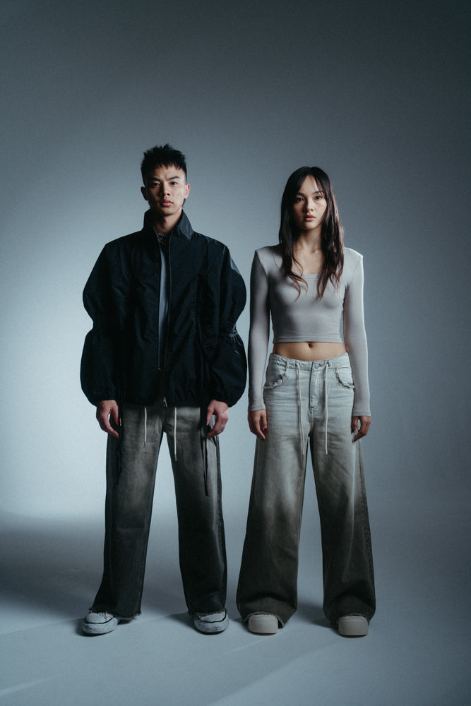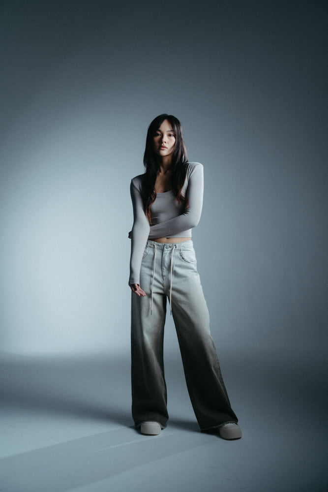 Ombre-dyed denim.